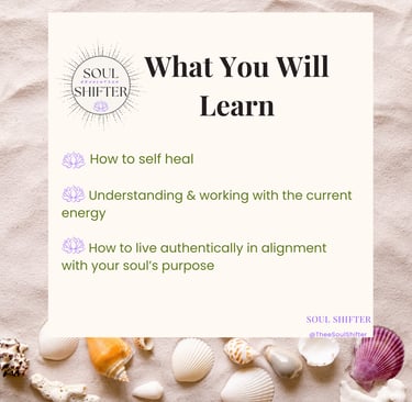We examine WHO you are on a SOUL level using astrology, numerology, and human design. You will acquire ways to
